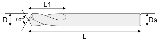| DTN - Spotting.External Coolant.Tip angle 90° | 定位外冷鑽頭.鑽尖 90° |