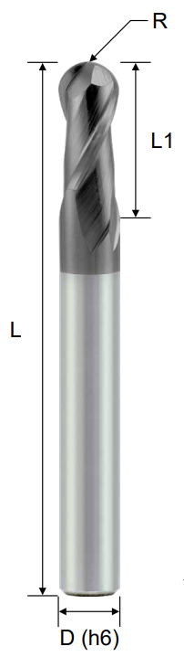 H65X - Ball Nose.Long Shank.2F 球型銑刀.長柄型.2刃